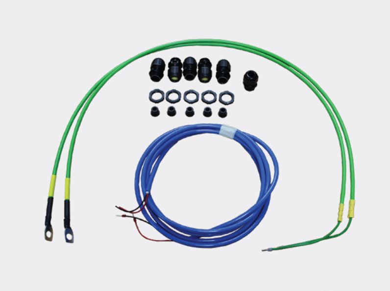 Ein Installationsset mit speziellen Kabeldurchführungen und Kabeln, abgestimmt auf das gewählte Gehäuse und die Klassifizierung des explosionsgefährdeten Bereiches, kann zusammen mit dem System bestellt werden.